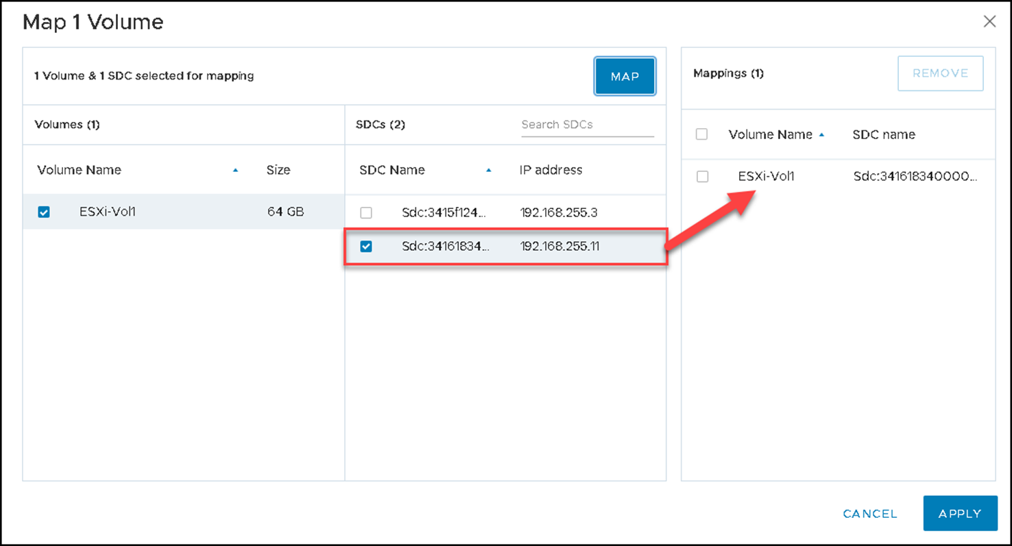 After adding the volume, we must map it to SDC: